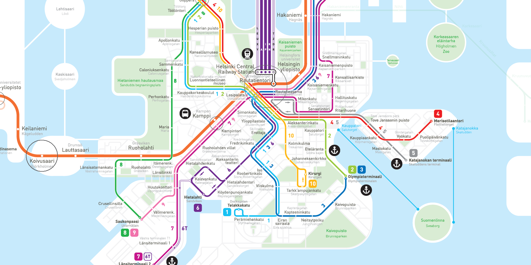 Hanaholmen is now served by the metro. The walking distance from the nearest metro station Koivusaari to Hanaholmen is approximately 1,1 km.